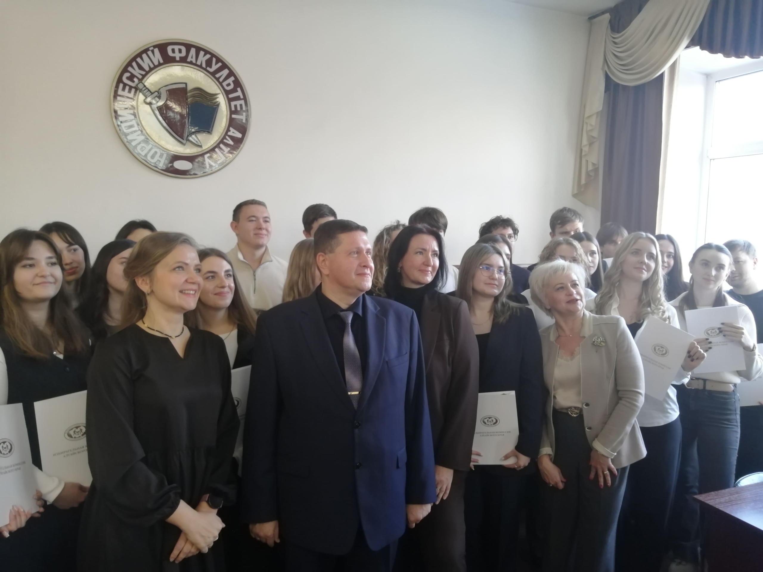 В торжественной обстановке студентов поздравила Председатель Избирательной комиссии Алтайского края, к.ю.н., доцент кафедры конституционного и международного права Ирина Леонидовна Акимова. Евгений Сергеевич Аничкин, директор юридического института, заведующий кафедрой конституционного и международного права, доктор юридических наук, профессор, отметил положительную динамику активного участия студентов. Так же были отмечены научные руководители к.ю.н. доцент Вера Сергеевна Зубкова и к.ю.н. доцент Олеся Леонидовна Казанцева, которые поблагодарили студентов за их активное участие.